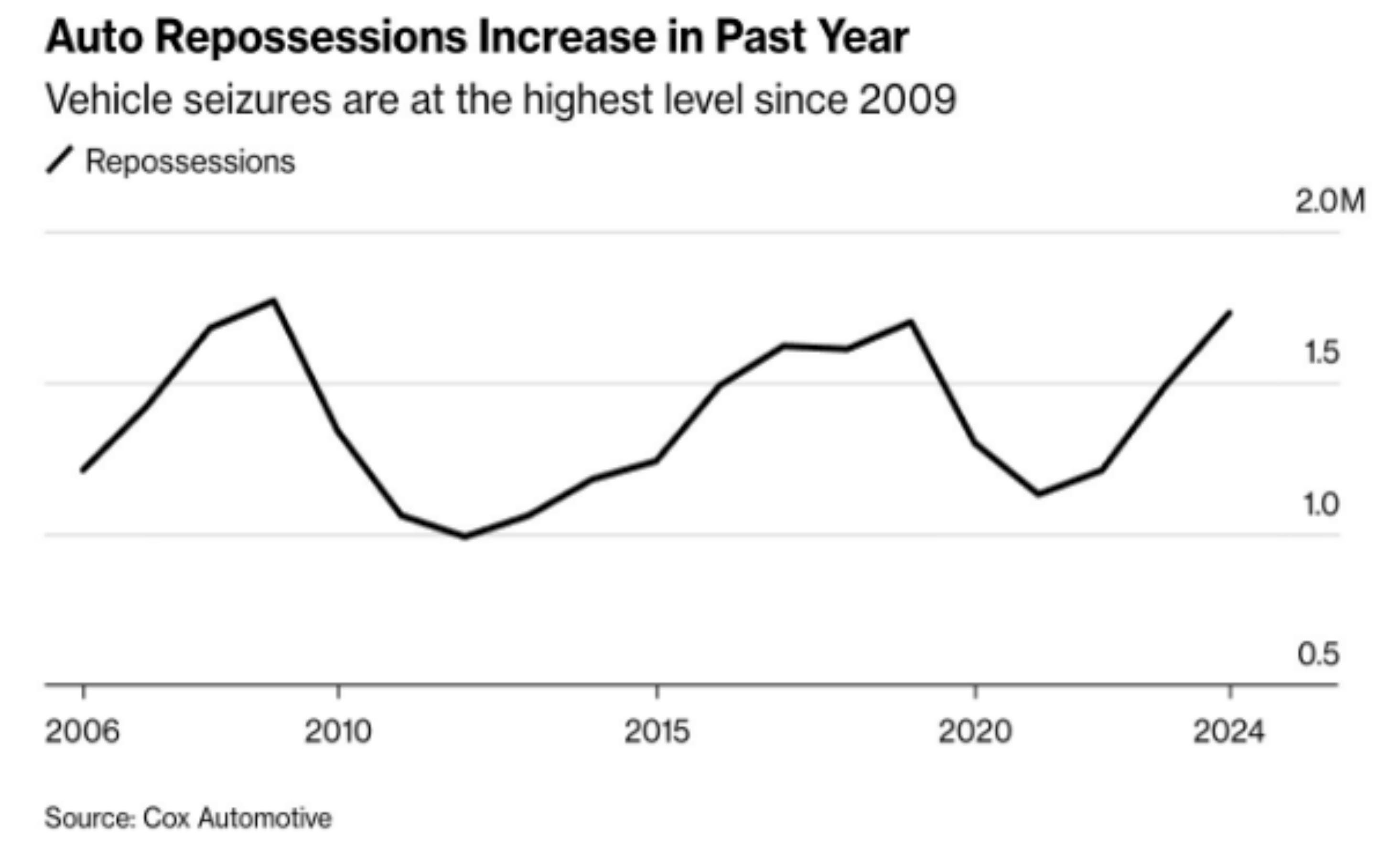 Auto repossessions are at the highest level since 2009