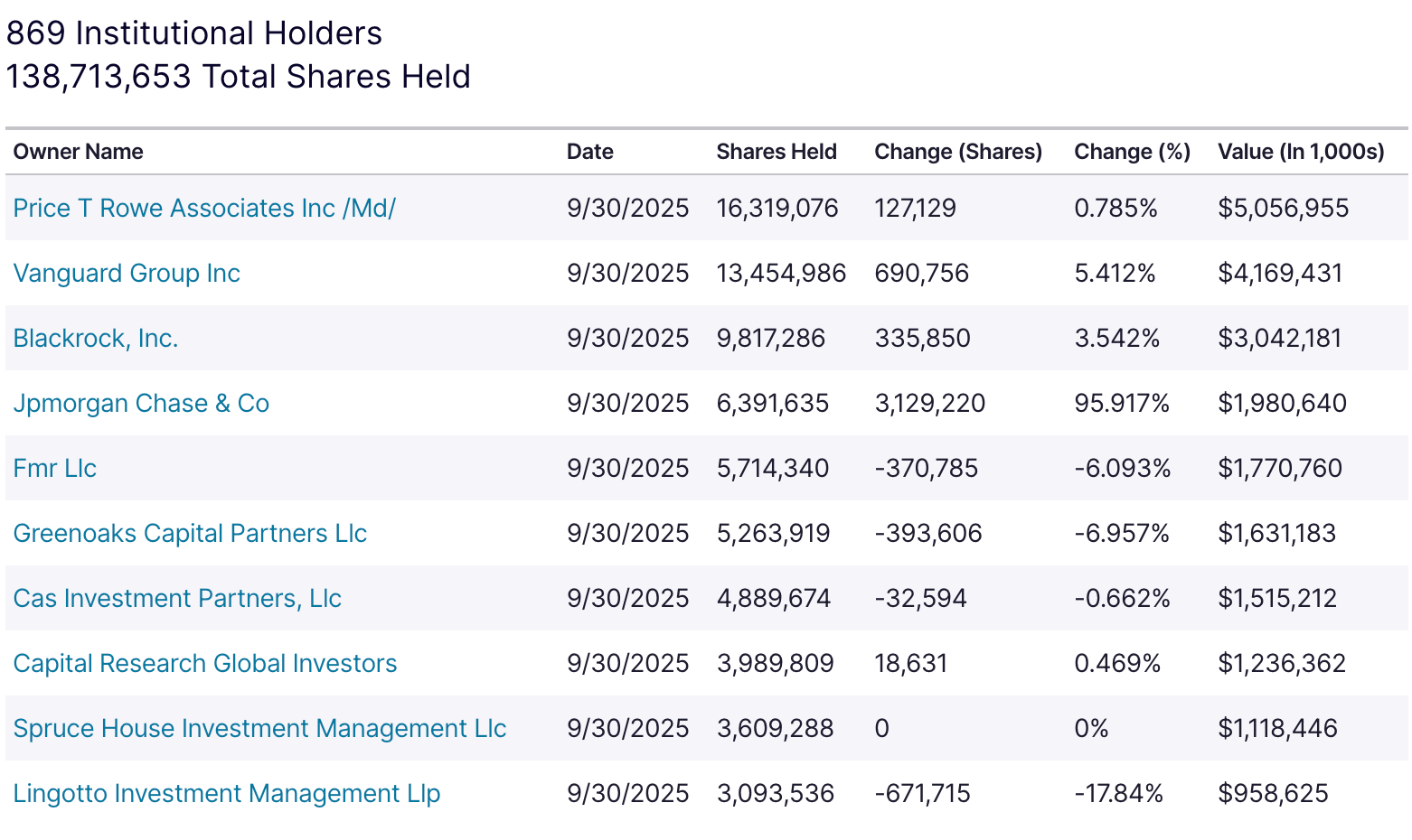 Institutional Ownership