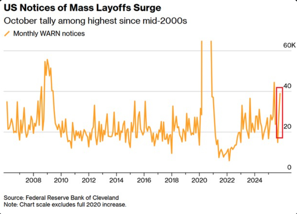 The labor market is also in a tough spot. Unemployment continues to trend higher with no signs of stabilizing, and announced layoffs have spiked meaningfully. This combination is not good for the auto industry.