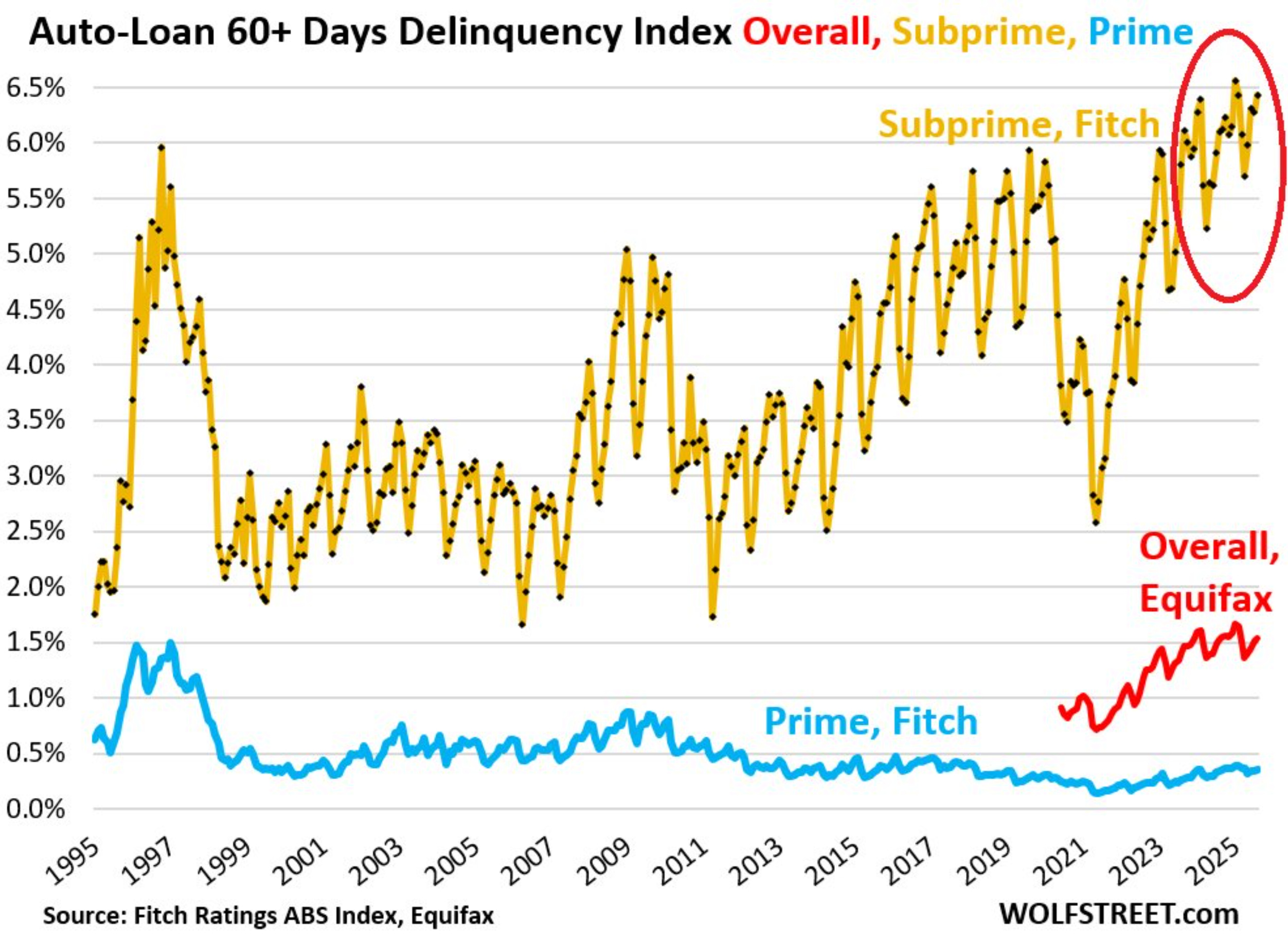 Subprime auto delinquencies are at all-time highs.