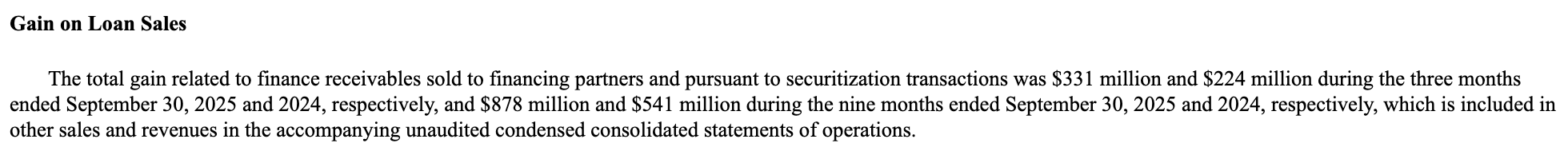 This “Gain on Loan Sales” hits the “Other sales and revenues” line which significantly contributes to achieving that gross margin. $1.21 Billion dollars of profit YTD came from loan sales.