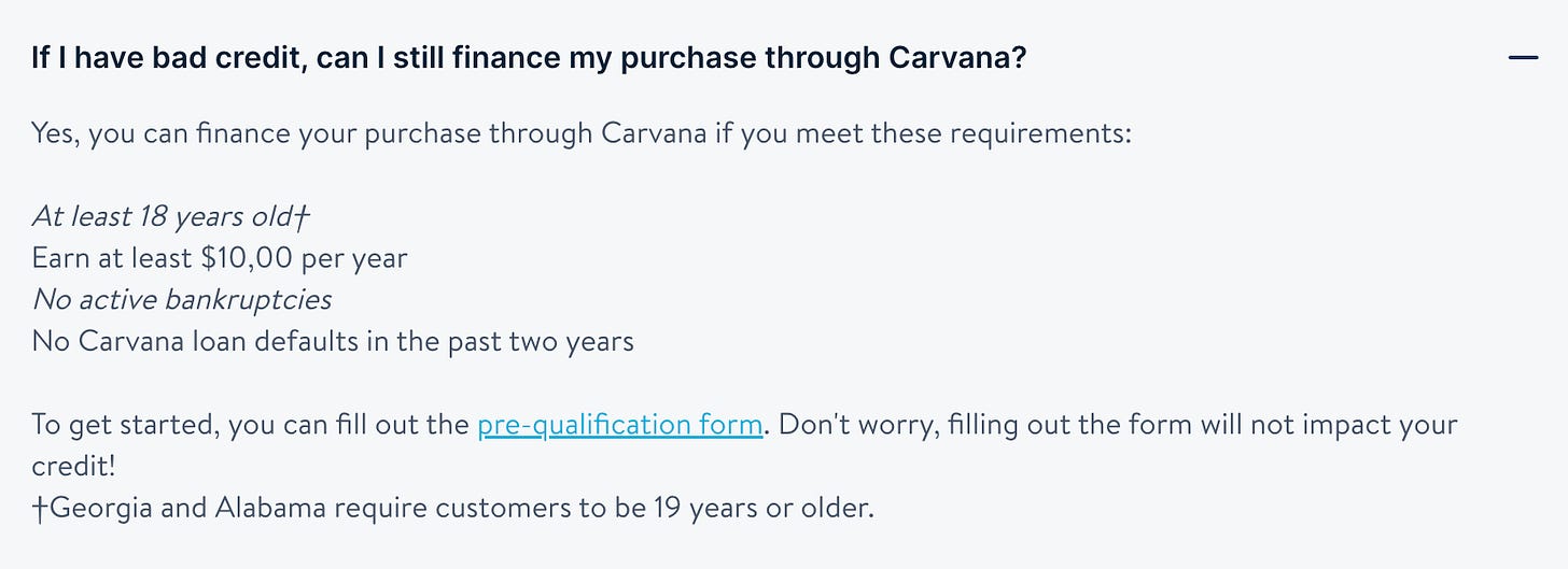 Just like Jim Chanos said "Carvana isn't in the business of selling cars- they are a seller of deep Subprime shit"
